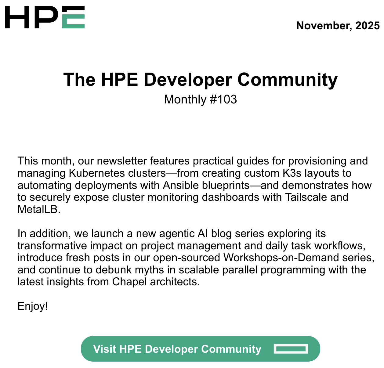 The November 🍂 HPE Developer Community newsletter is out! 📰 Learn about K3s, Grafana and agentic AI in the HPE ecosystem. https://datamattsson.io/47xnSTi
